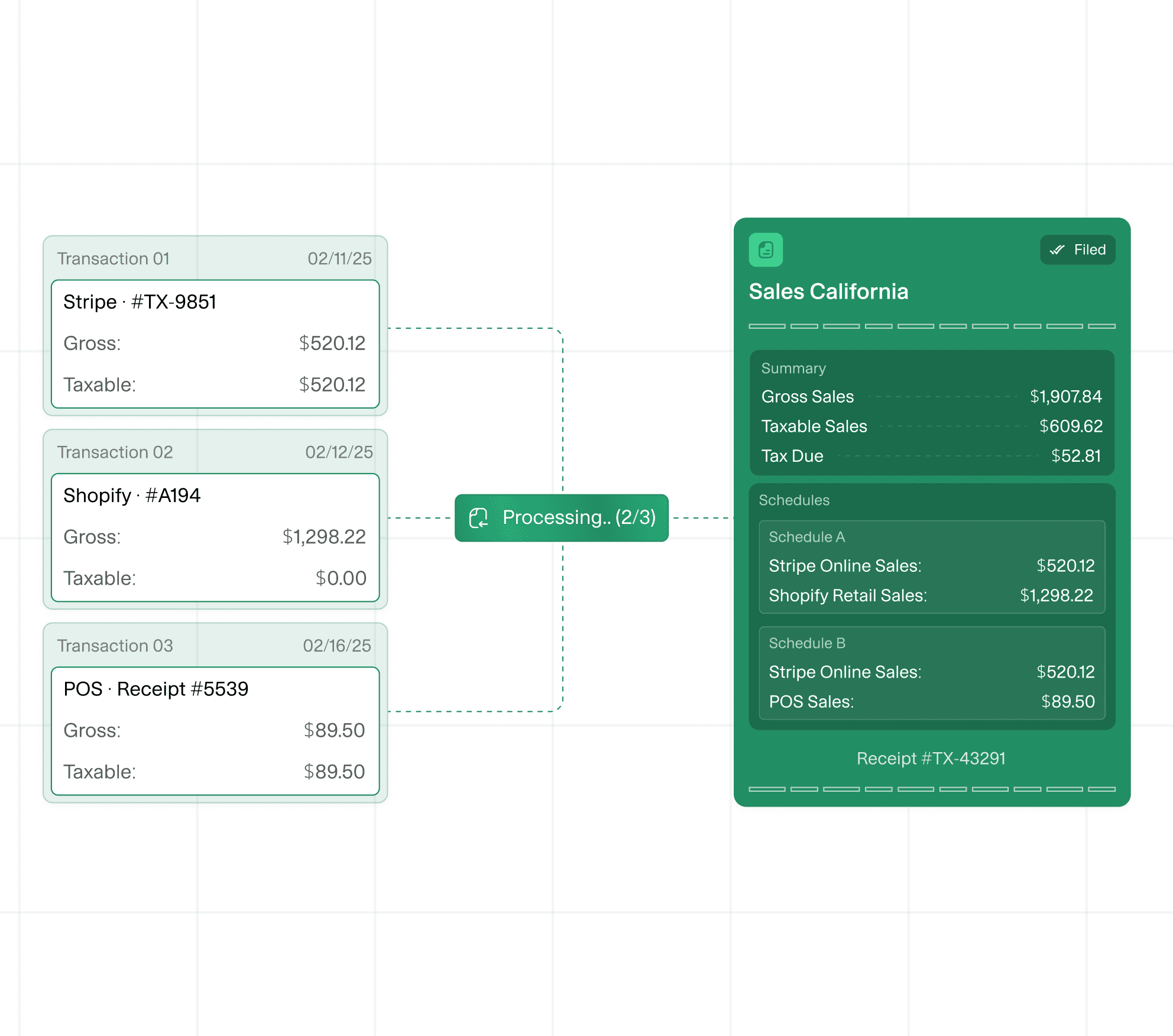 Taxwire provides a single, clean interface to translate your transaction data into the form the states expect to be filed and reported. Every transaction can be tied to audit-proof citations to source statutes.
